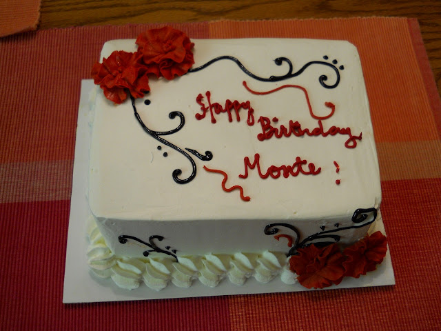 Happy Birthday Sweetheart. Today is Monte's birthday. I drove into downtown Placerville to get this ice cream cake. I was not sure if there is one in town but I found one online. Nothing fancy.. just the two of us. He also spent his day cutting brush and the lower branches of the trees on the left hand side of the house.