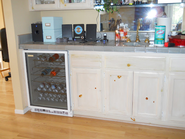 The empty spot on the wet bar was filled. I got the wine refrigerator finally. We do not drink so it is filled with bottled water and energy drinks.